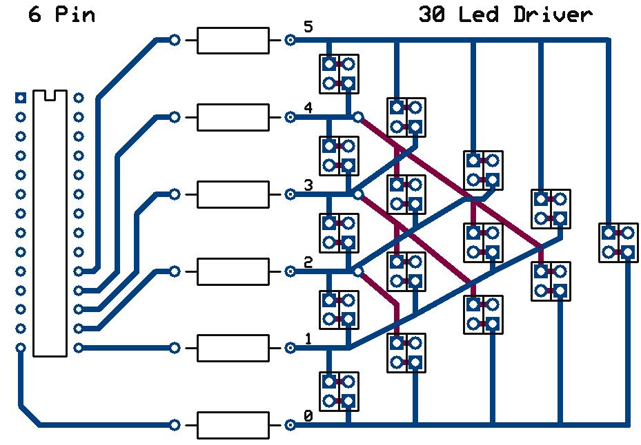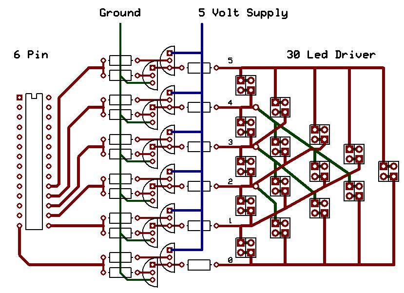 Control 30 LEDS With 6 Pins On The ATmega168 MicrocontrollerIf under 20mA If over 20mA use 6 PNP's and NPN's